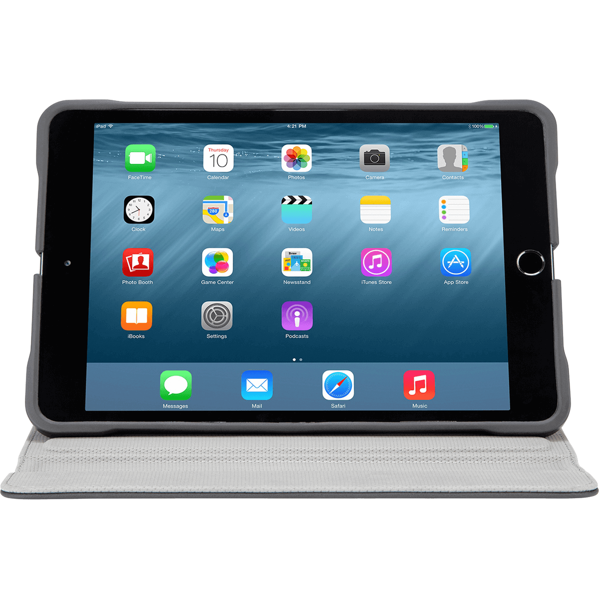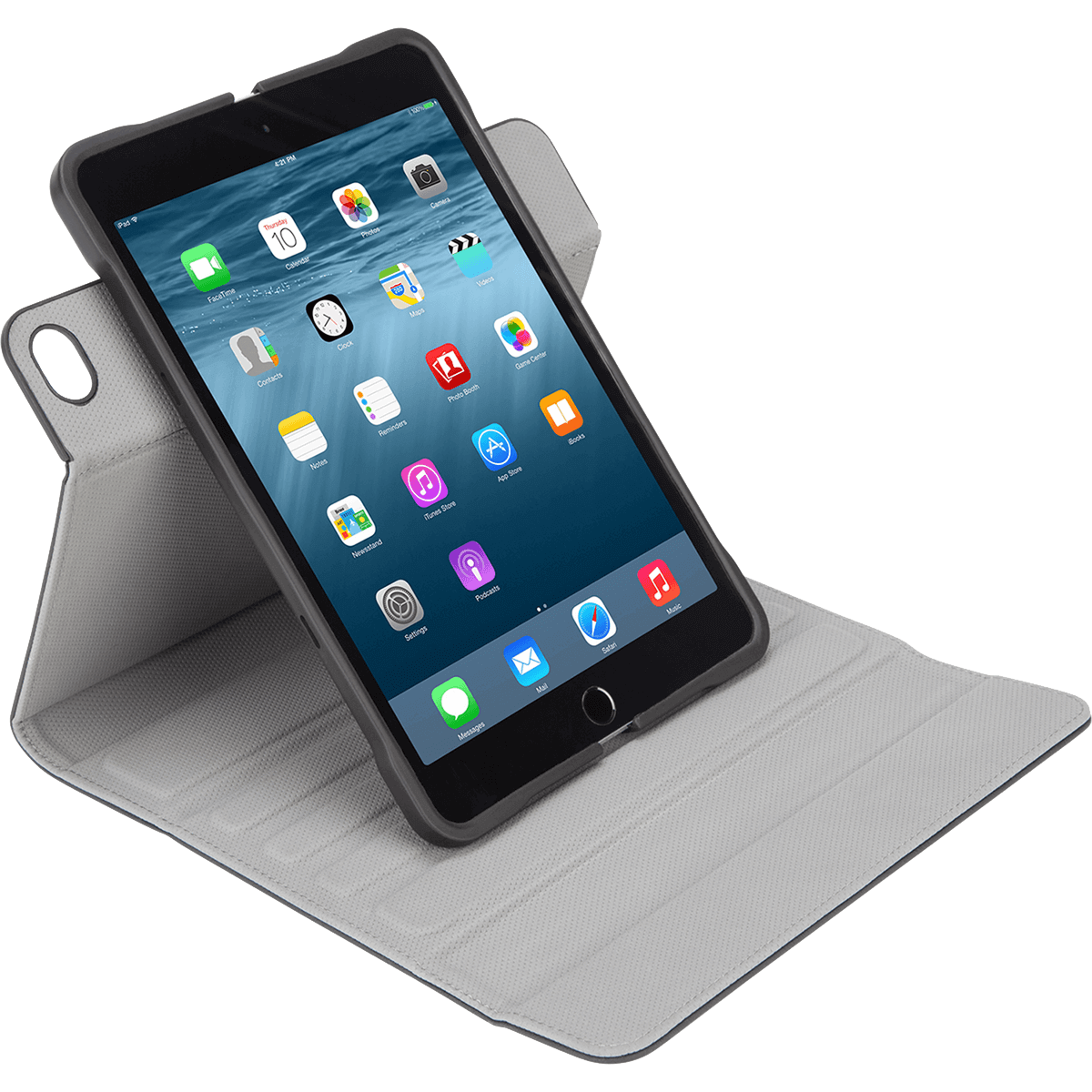 The VersaVu® Slim 360° Rotating Case for iPad mini® 4 (Black) offers military grade drop protection* and adjustable portrait/landscape viewing in a in a thin profile design. Also fits all earlier versions of iPad mini.